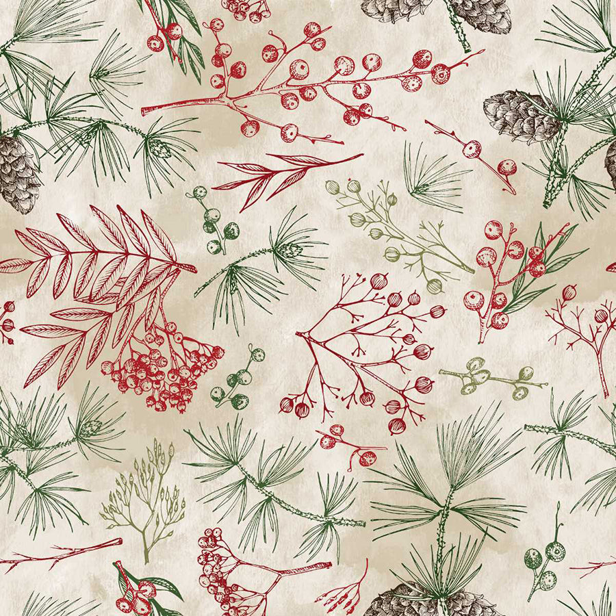 108" Wide Quilt Backing Good Natured Tree Bits Christmas