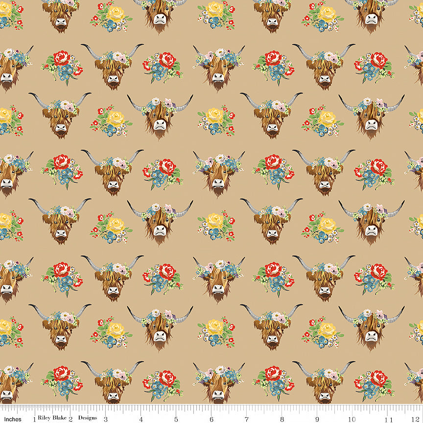 Cowgirl Highland Cows Brown – Riley Blake – Fort Worth Fabric Studio