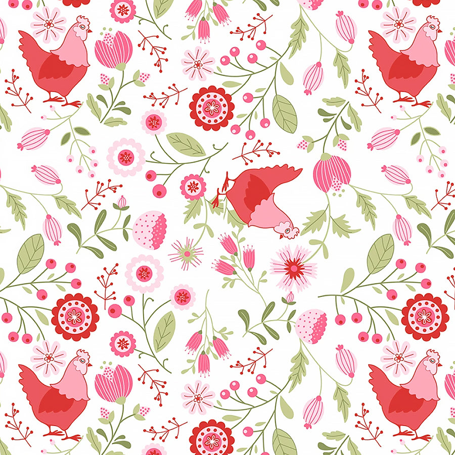 Smitten Chicken Main White – Poppie Cotton – Fort Worth Fabric Studio